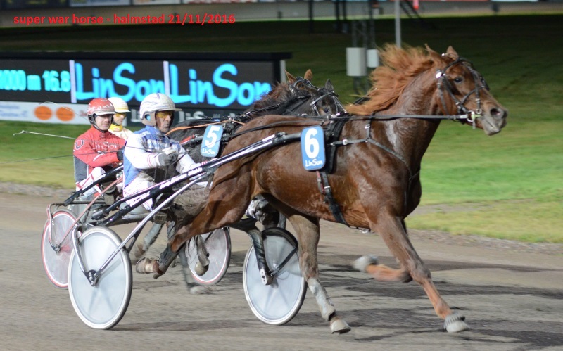 Con allevatore italiano ma registrato in Svezia, Super War Horse ha avuto una carriera breve ma di ottimo livello, con 8 vittorie, 13 secondi e 4 terzi posti in 36 corse disputate (5 in Italia, con 3 vittorie, 1 secondo e 1 terzo).